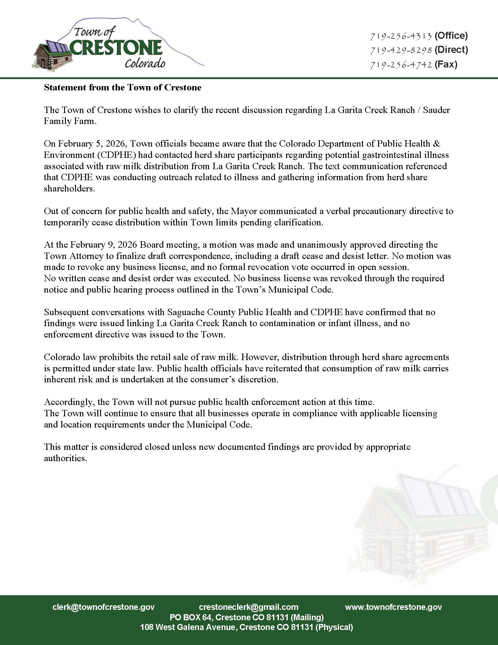 Public Statement on Raw Milk Distribution Discussion